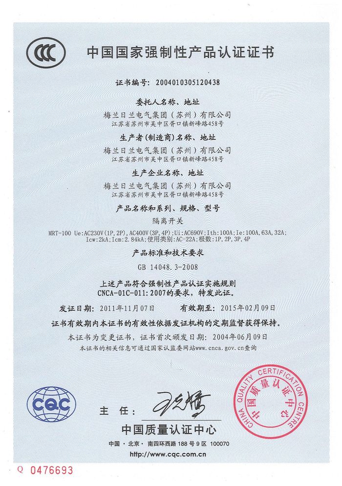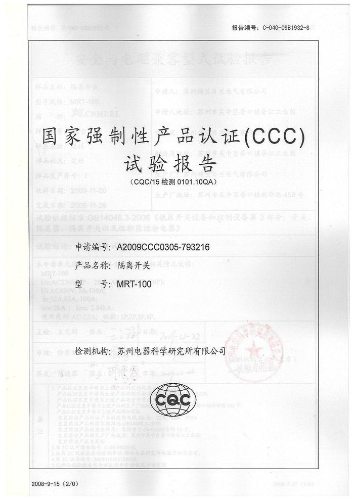 MRT-100隔離開(kāi)關(guān)資質(zhì)證書