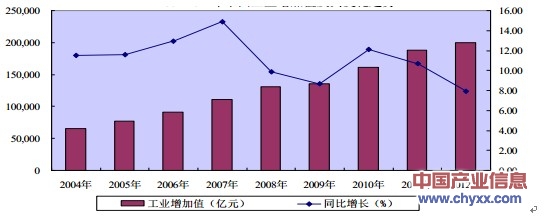 工業領域是使用低壓電器產品最為主要的領域之一。我國工業一直保持較好的發展勢頭,2012年我國工業增加值達到199,860億元,較2004年增長204.69%。工業領域中機械工業比重逐漸增加,我國目前已經成為世界機械工業大國,正逐漸走向機械工業強國,機械產品的數量和質量將躍上一個新臺階。密集使用低壓電器產品的機械工業的發展將會為低壓電器行業特別是中、高端低壓電器帶來發展機遇。