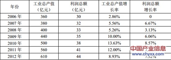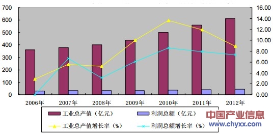 2006-2012年低壓電器行業工業總產值、利潤總額增長趨勢