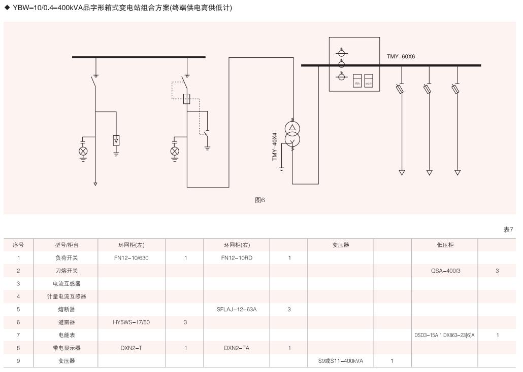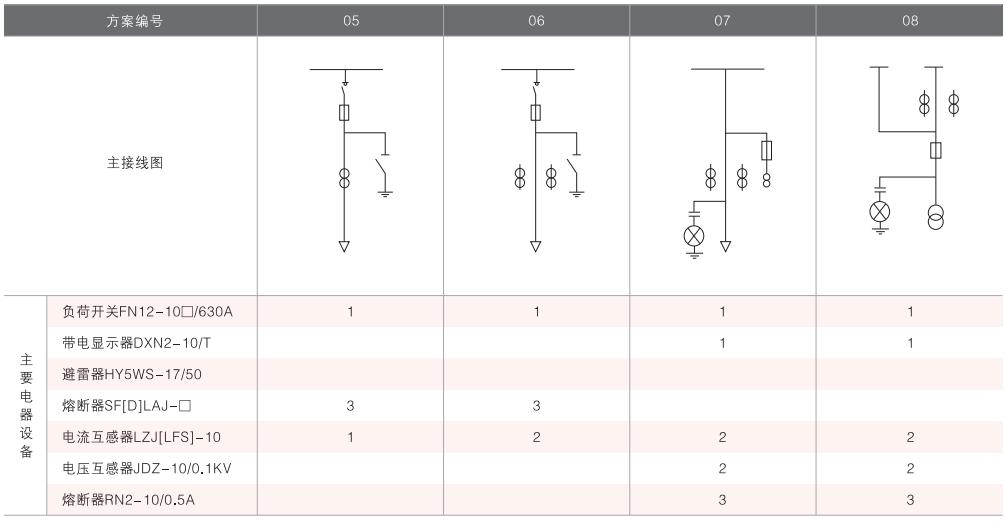 表6~列舉了一些典型組合接線方案,供用戶和設計單位參考。(以配裝壓氣式負荷開關為例)