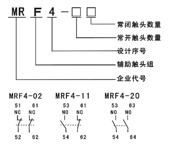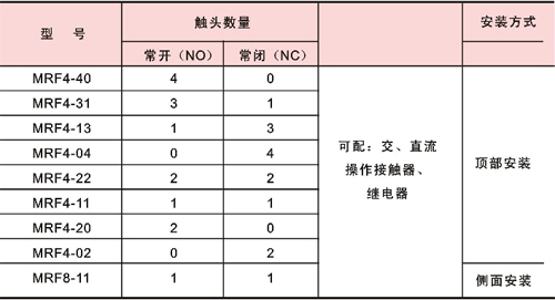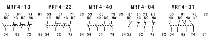 MRF系列有二極和四極兩種,該輔助觸頭組和交流接觸器或接觸器式繼電器組合后能擴展輔助觸點的數量。