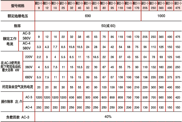 注:熱過載繼電器的整定電流應≤接觸器的額定工作電流,吸引線圈電壓的其它規格可特殊定貨。