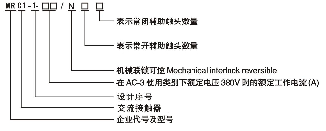 MRCl-1-口/N系列機械聯鎖可逆接觸器主要用于交流50Hz或60Hz,額定絕緣電壓至1000V,在AC-3使用類別下,額定工作電壓為380V時,額定工作電流至475A的電力線路中,控制交流電動機的正轉與反轉。