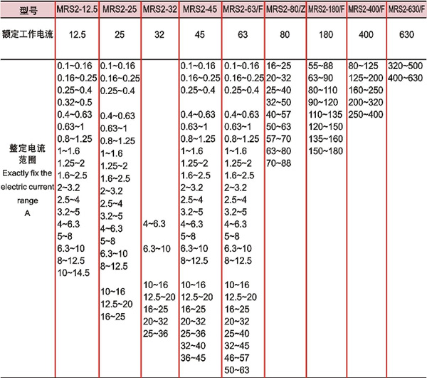 MRS2系列熱過載繼電器(以下簡稱熱繼電器),適用于交流50Hz/60Hz、工作電壓至660V,電流從0.1 A - 630A不間斷或斷續工作制一般用于交流電動機過載及斷相保護。產品性能穩定,動作可靠。