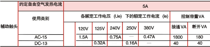 2、輔助觸頭技術參數