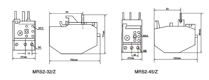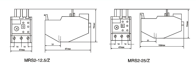 a、訂購MRS2系列熱過載繼電器時說明產品型號,規格,整定電流范圍,安裝方式,訂貨數量;
