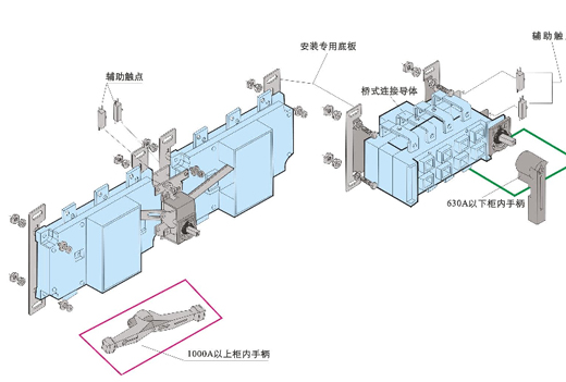 柜內操作:手柄直接安裝在開關上。
