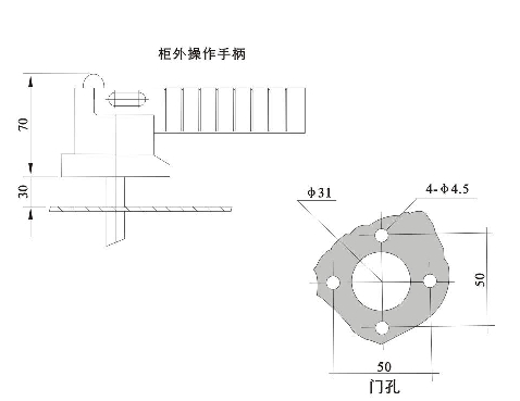 柜外操作:手柄安裝在配電柜柜門外。