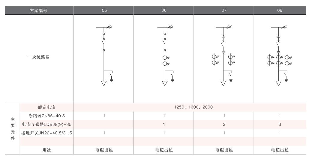 開關柜的一次接線方案有27個常用典型方案,能滿足用戶電纜進出線、架空進出線,聯絡級測量、保護等的需要,若有不同與現有方案的其他方案的需要,請與廠方協商。