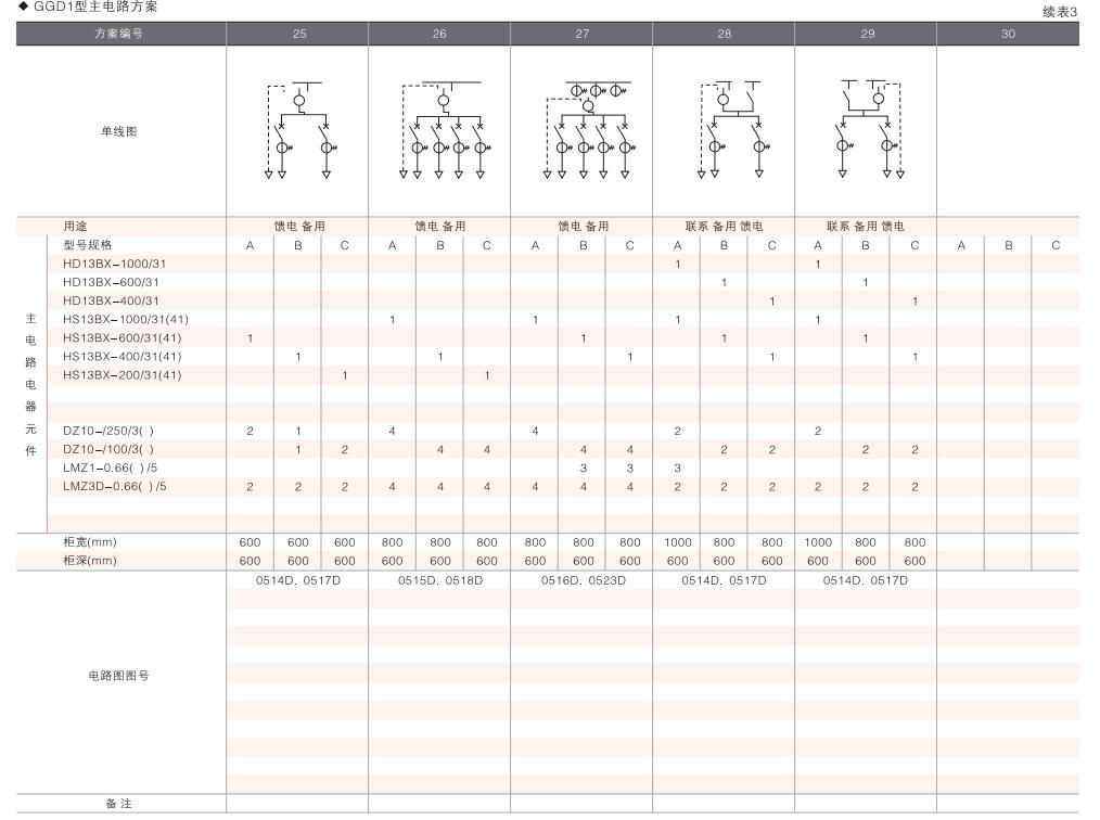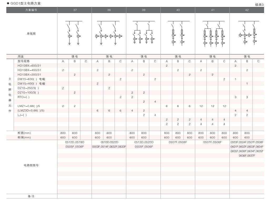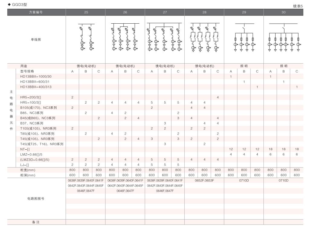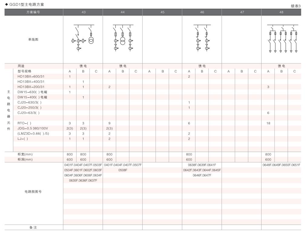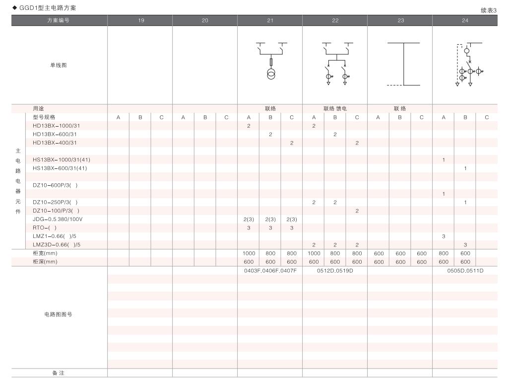 GGD柜的主電路設計7129個方案,共298個規格《不包括輔助電路的功能變化及控制電壓的變化而派生的方案和規格)。