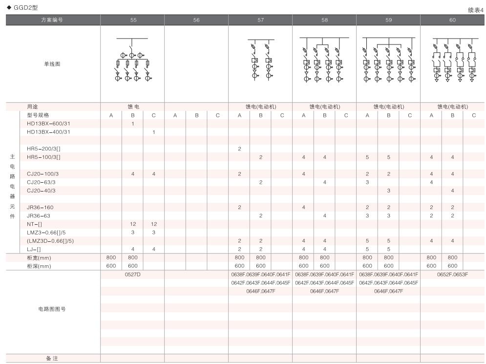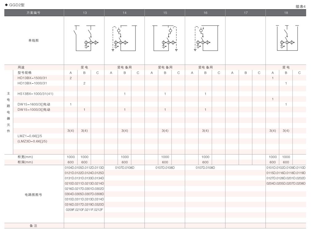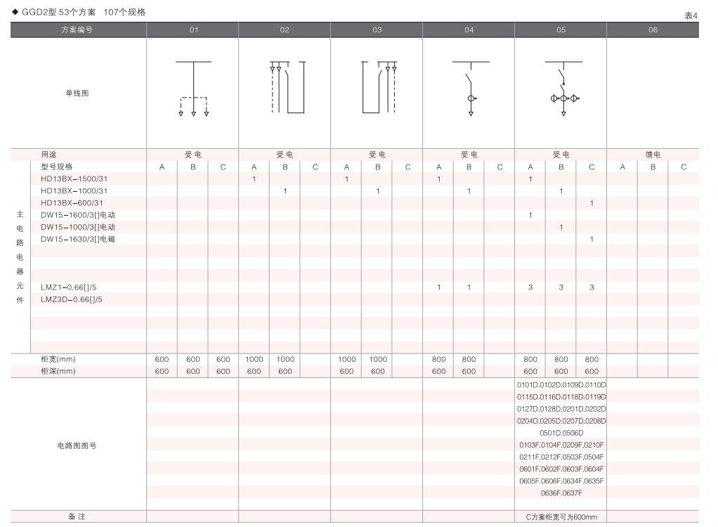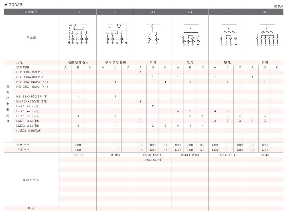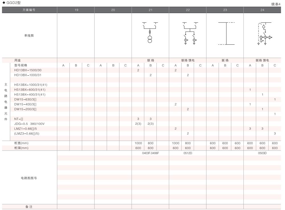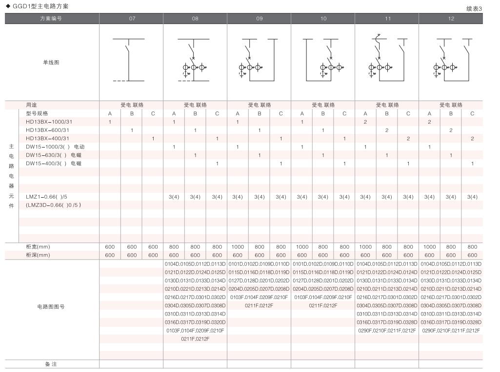 此外,為適應無功補償的需要設計了GGD電容補償柜,其主電路方案4個,共12個規格。