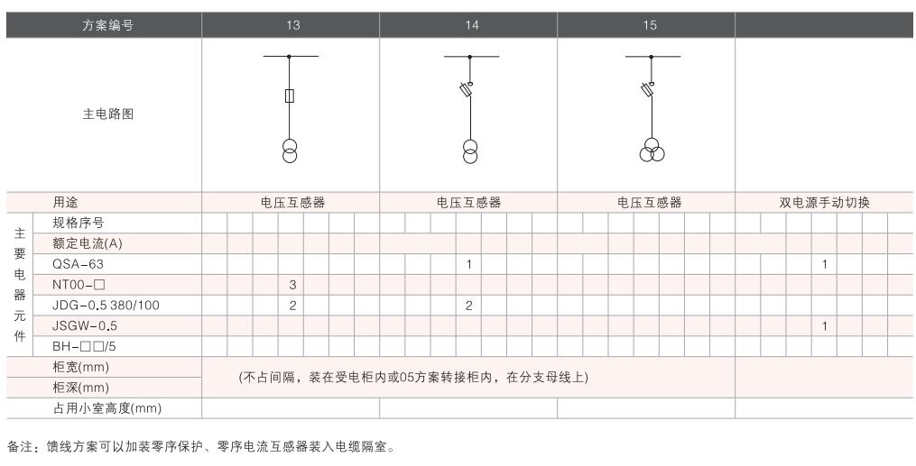 開關(guān)設(shè)備主電路方案共32組118個(gè)規(guī)格(見表2).不包括由于輔助電路的控制與保護(hù)的變化而派生的方案和規(guī)格。包括了發(fā)電、供用電和其它電力用戶的需要,額定工作電流為4000A,適合2500kVA及以下的配電變壓器選用。